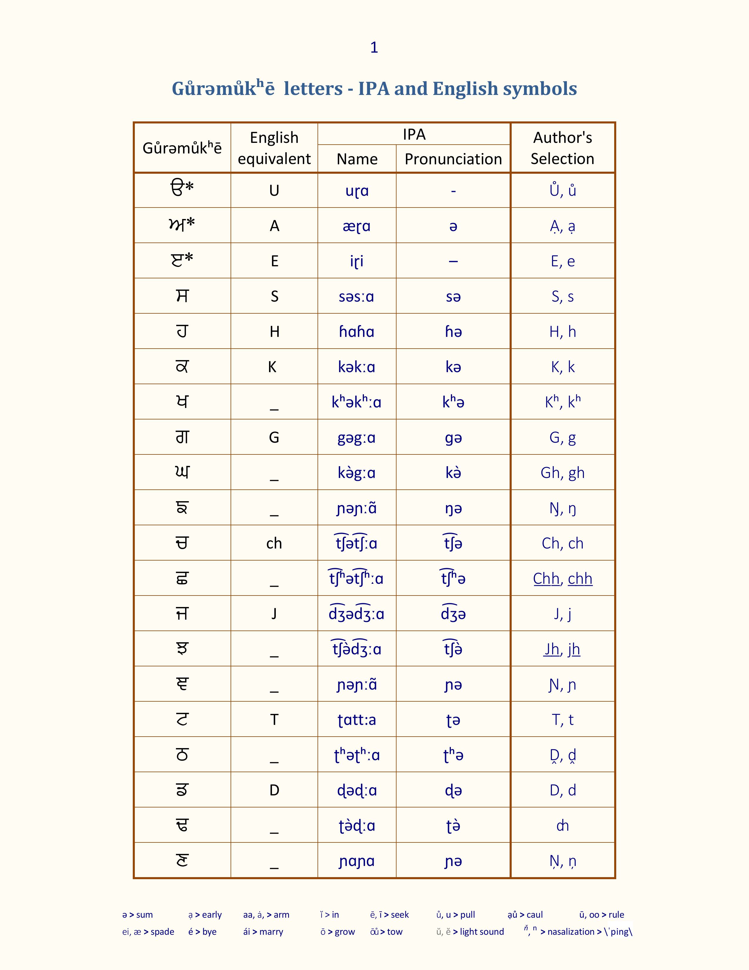 International Phonetic Alphabet (IPA) symbols corresponding to Gůrǝmůkʰē letters, providing precise pronunciation guidance for accurate recitation and understanding.