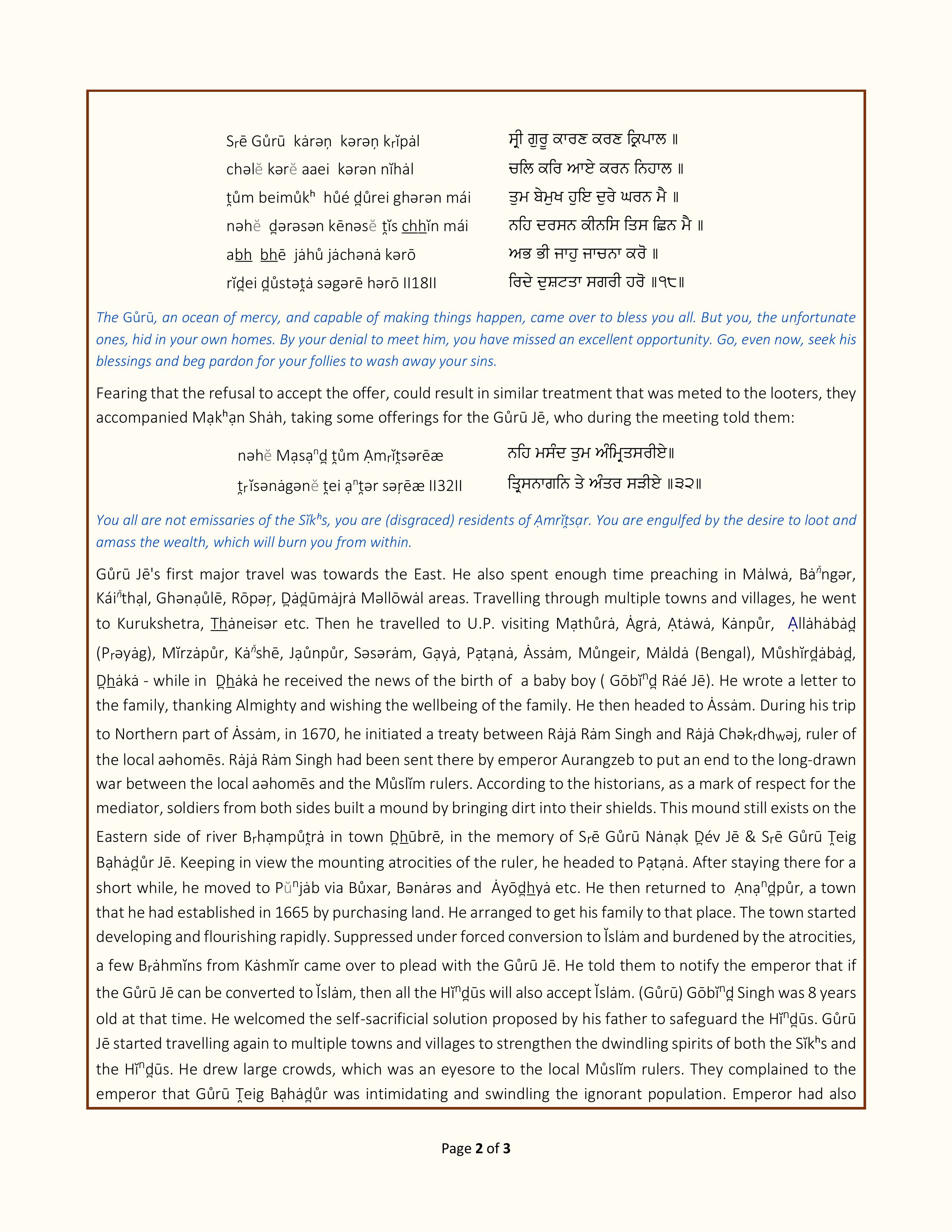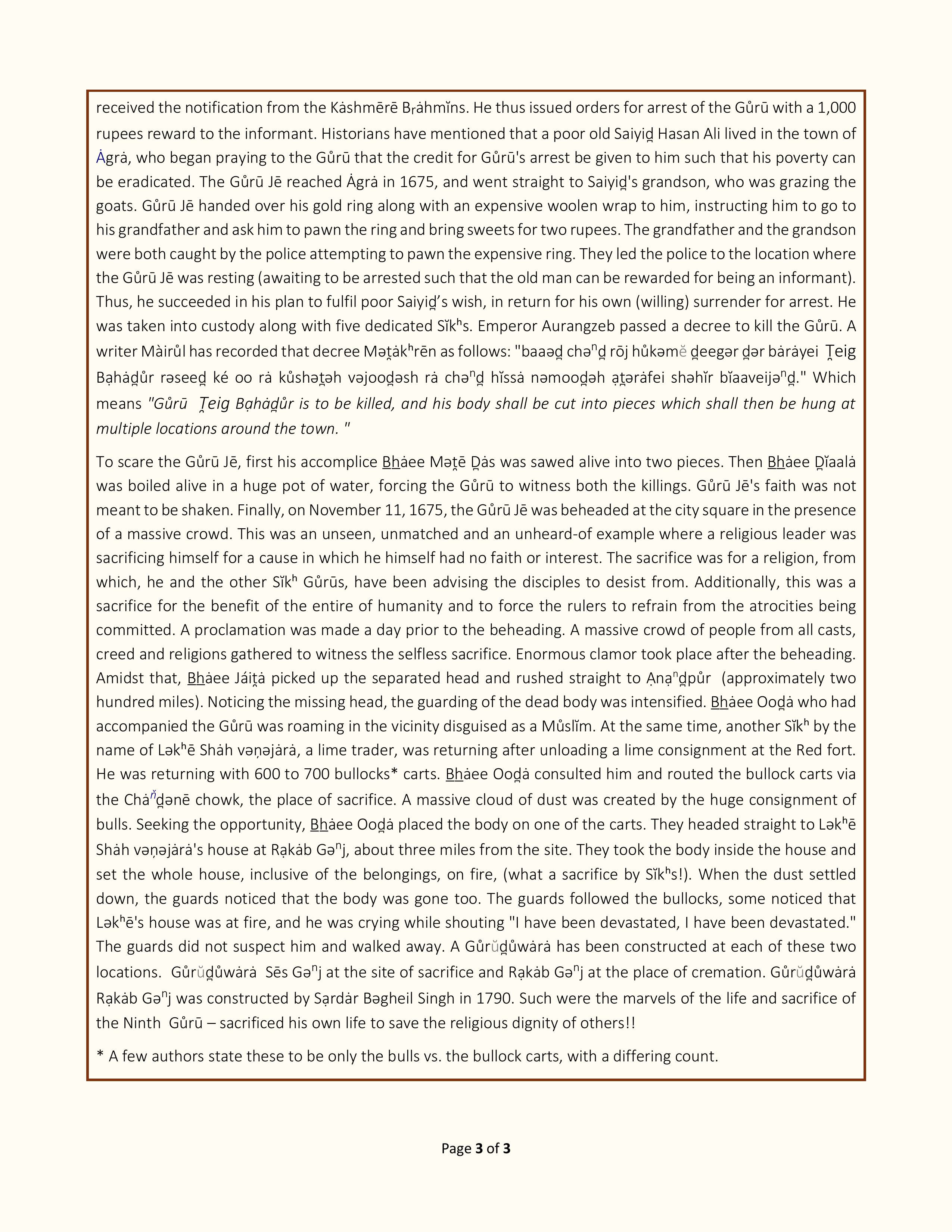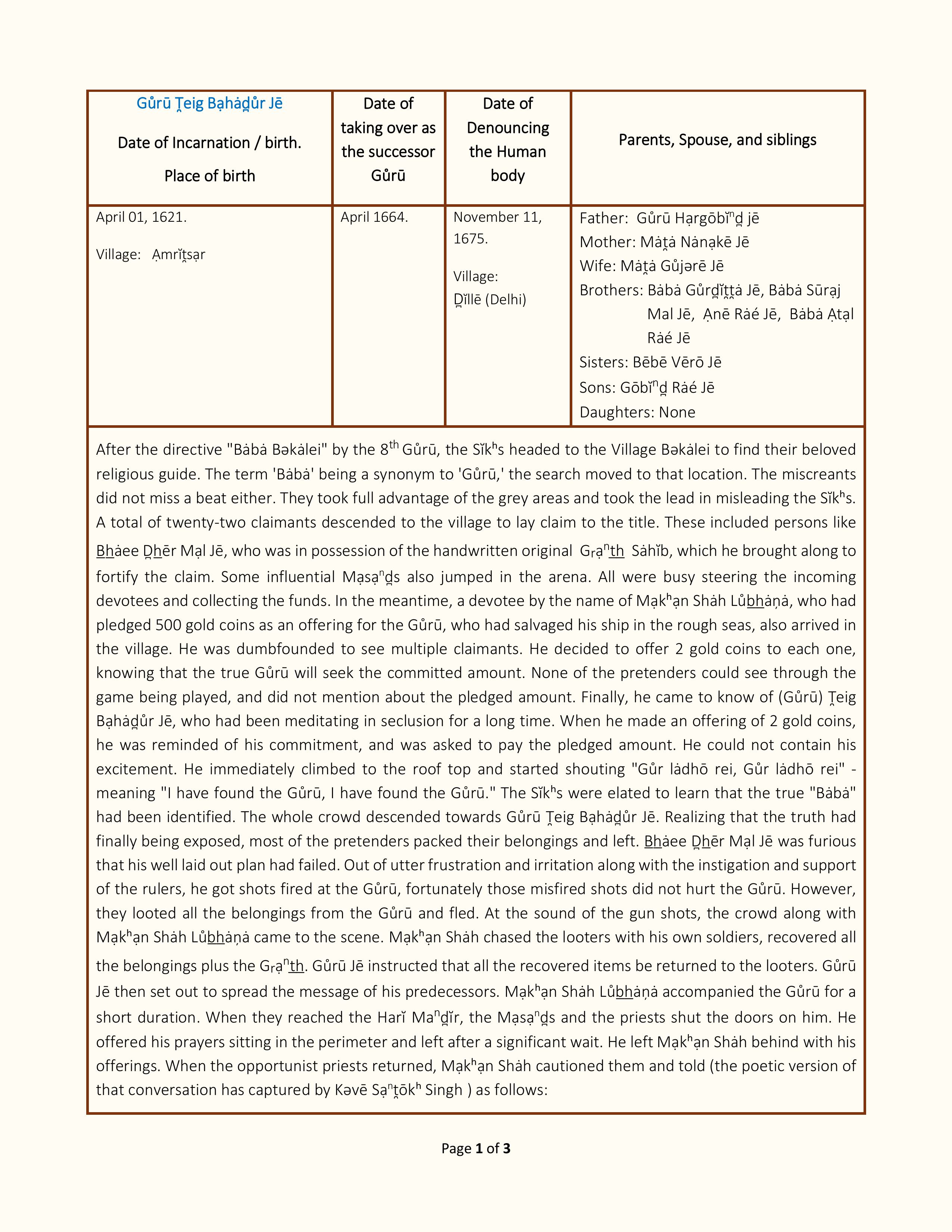 The Ninth Sĭkʰ Gůrū • 1621-1675 CE