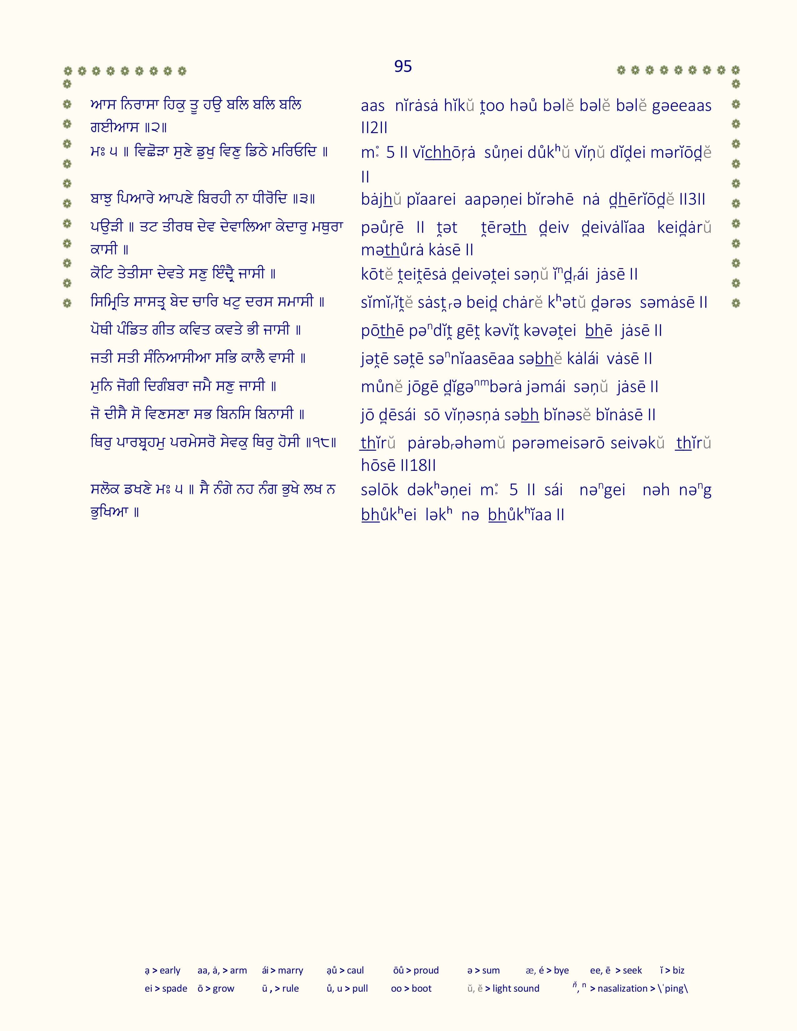 Detailed line by line color-coded transliteration for pǝnnȧ 1051-1100 of Sri Guru Granth Sahib. Enhanced readability and pronunciation accuracy for the sacred Gůrǝbȧņē text.